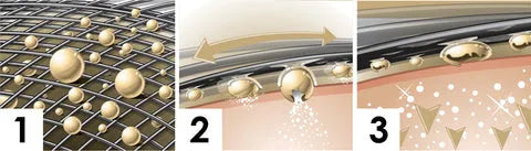 2/ Libération progressif des actifs par frottement du tissu sur la peau durant toute la durée du soin