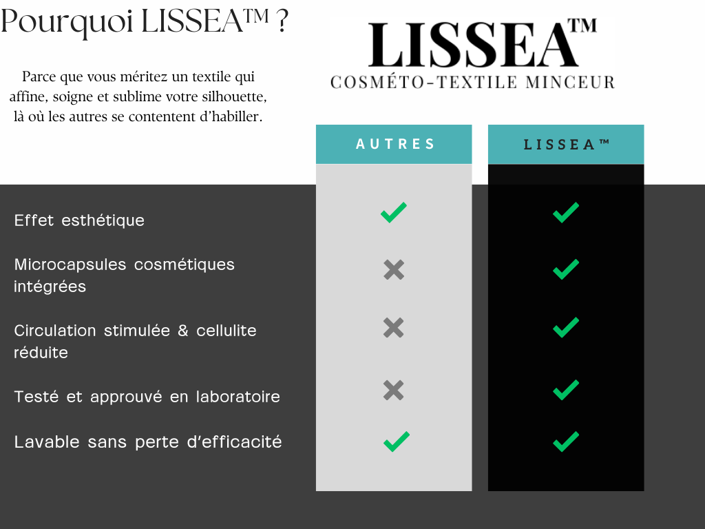 Le secret des cosméto-textile minceur LISSEA™ repose sur l’alliance de 2 savoir-faire, celui de la cosmétique microencapsulé et celui du textile technique.